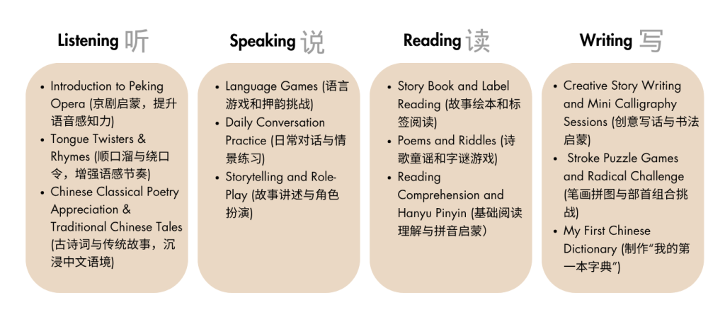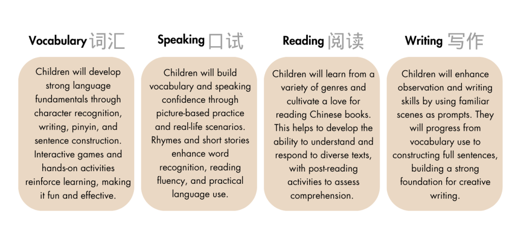 This approach lays the groundwork for early reading and writing, nurturing children who are not only confident in using Mandarin but also excited to explore its cultural richness.